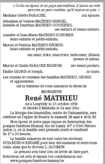 {"name":"Monsieur Ren\u00e9 MATHIEU","caption":"De 25\/10\/1958 \u00e0 24\/05\/2016","description":"Consulter l'avis de d\u00e9c\u00e8s sur le site \"En M\u00e9moire\"","link":"http:\/\/enmemoire.sudinfo.be\/\/annonce\/254291621464195735\/mathieu-ren%25C3%25A9","portrait":"http:\/\/enmemoire.sudinfo.be\/sites\/default\/files\/mediastore\/imagecache\/small2\/"}