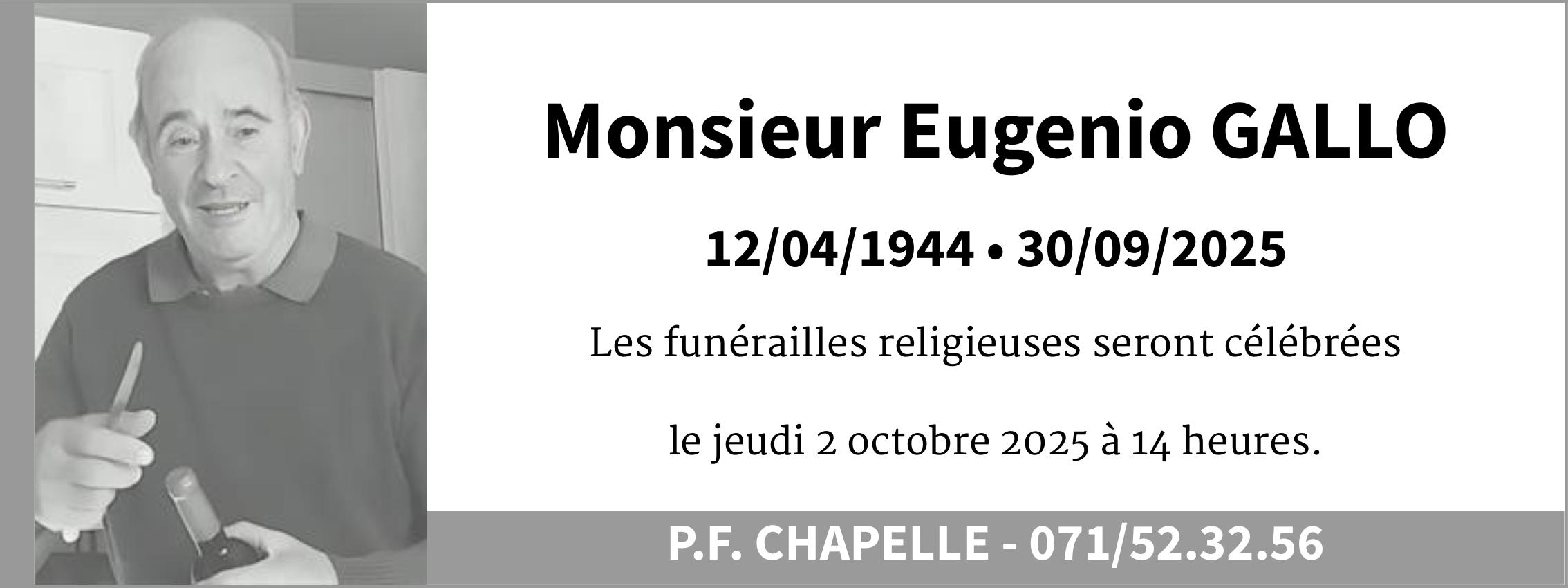 {"name":"Monsieur Eugenio GALLO","caption":"De 12\/04\/1944 \u00e0 30\/09\/2025","description":"Consulter l'avis de d\u00e9c\u00e8s sur le site \"En M\u00e9moire\"","link":"http:\/\/enmemoire.sudinfo.be\/\/annonce\/306655911759262811\/gallo-eugenio","portrait":"http:\/\/enmemoire.sudinfo.be\/sites\/default\/files\/mediastore\/imagecache\/small2\/"}